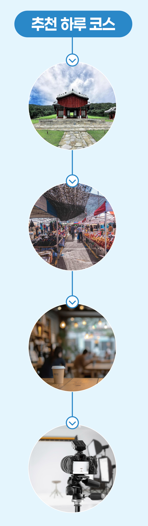 AM 11:00 | 세계유산 장릉 유네스코 세계유산인 장릉은 비교적 평탄한 산책로가 조성되어 있어 유모차와 휠체어 이동이 가능하다. 역사적 가치와 숲의 쾌적함을 함께 느끼며 3대가 나란히 걷기 좋다.