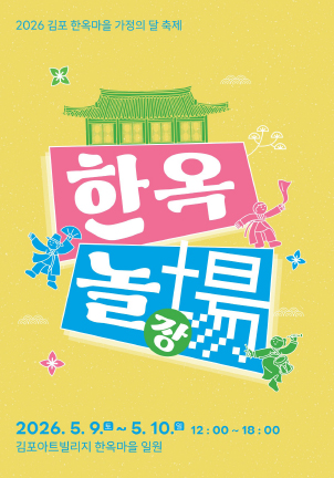 • 5. 9.(토) ~ 10.(일) 한옥놀장(場) 전통 액션 연희극 <쌈 구경가자!> 등 다채로운 공연, 전시, 체험, 가족참여 놀이가 펼쳐진다. (김포아트빌리지 한옥마을 일원)