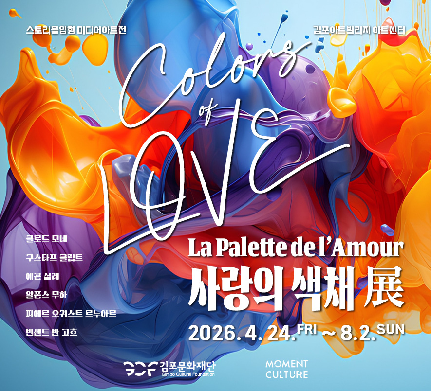 •~ 8. 2.(일) <La Palette de l’Amour: 사랑의 색채〉 심리학자 존 A. 리의 사랑의 색채 이론을 바탕으로 클로드 모네, 구스타프 클림트, 빈센트 반 고흐의 삶과 작품에 연결한 미디어아트 전시(김포아트빌리지 아트센터)